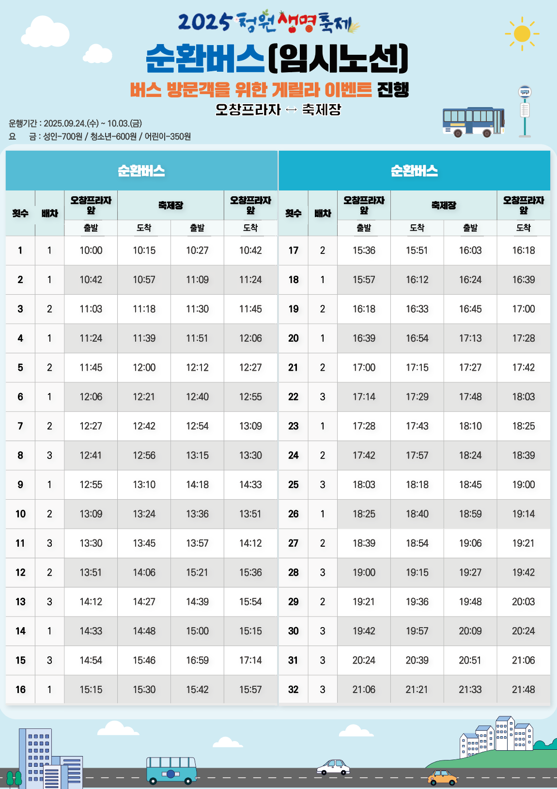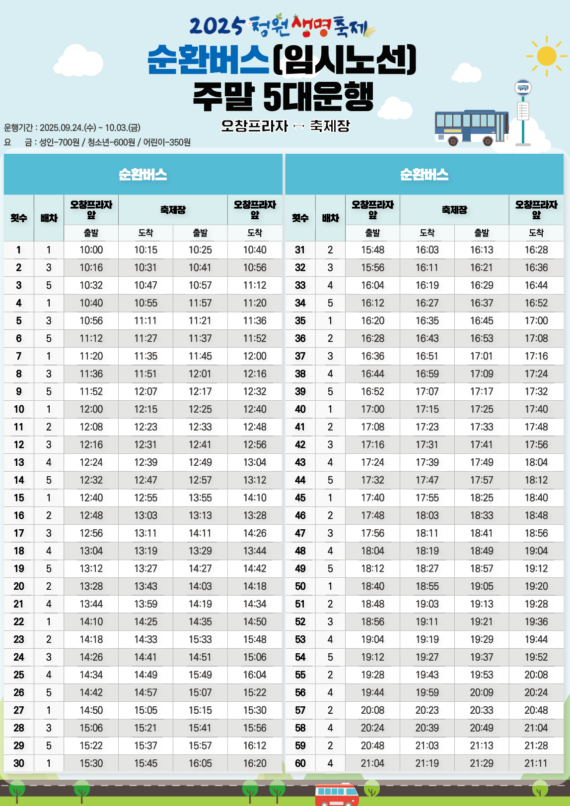 운행장소 | 오창프라자 정류장 ↔ 축제장 |
